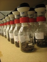 The collected soil samples are analysed for glucose induced respiration rates. An appropiate amount of glucose is mixed with the samples and incubated in closed vessels. To calculate oxygen consumption and carbon dioxide release, the pressure decrease in the reaction vessels is measured up to 24 consecutive hours.